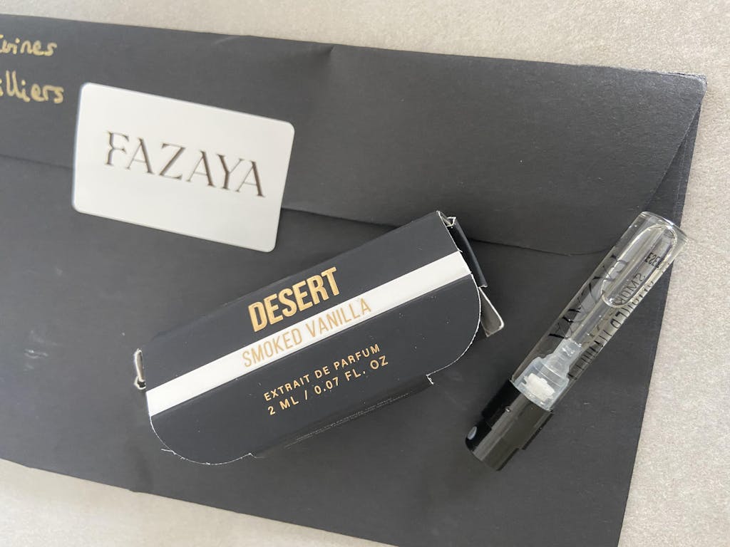 The Desert Sugar fragrance was created thanks to designer Pierre-Constantin Guéros's numerous trips to the Middle East. A highly concentrated elixir, this first refined composition combines Eastern and Western notes. With this very first fragrance, Fazaya is taking a gamble, aiming to create a luxurious and immersive sensory experience while crafting a memorable and timeless fragrance. In terms of design, Desert Sugar's bottle embodies simplicity and beautiful detail, qualities that are also present in the fragrance's signature scent.